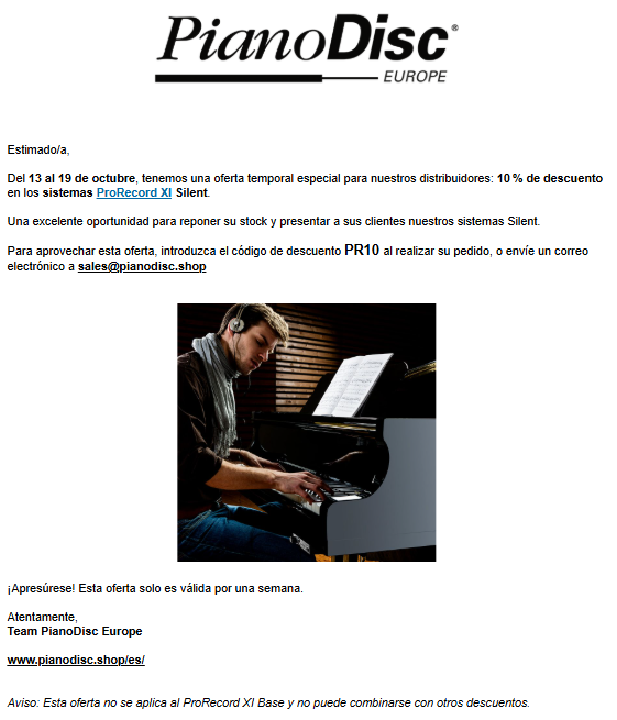Utilisez le code PR10 et bénéficiez de 10 % de réduction sur le système ProRecord XI Silent. Offre valable uniquement du 13 au 19 octobre 2025 – ne tardez pas !